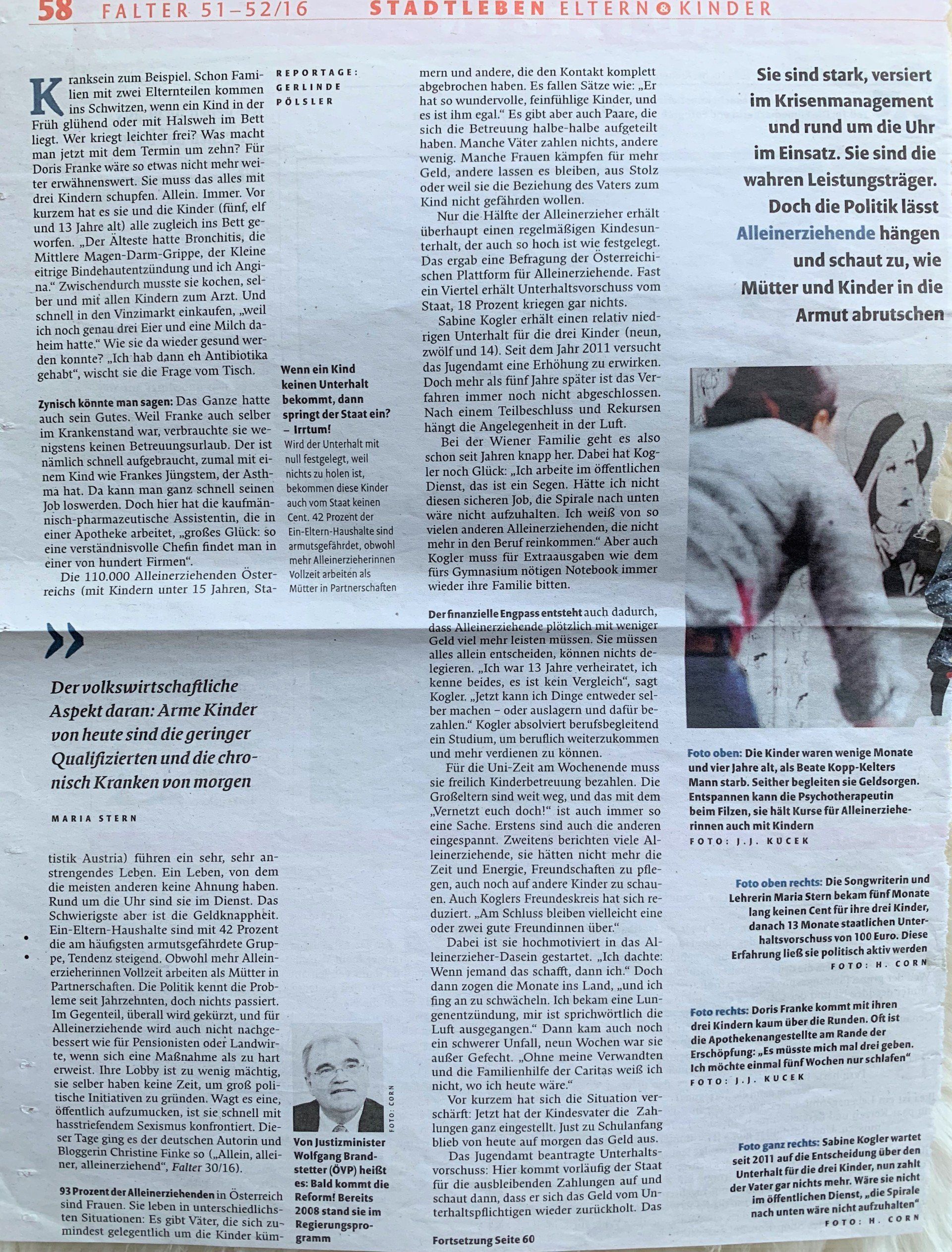 Wiener Zeitung: Unterhalt für jedes Kind (Sept 2017)